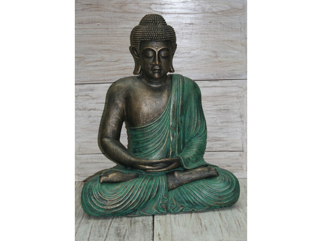 Socha Budha Buddha fiber pryskyřice 60cm - zelené roucho